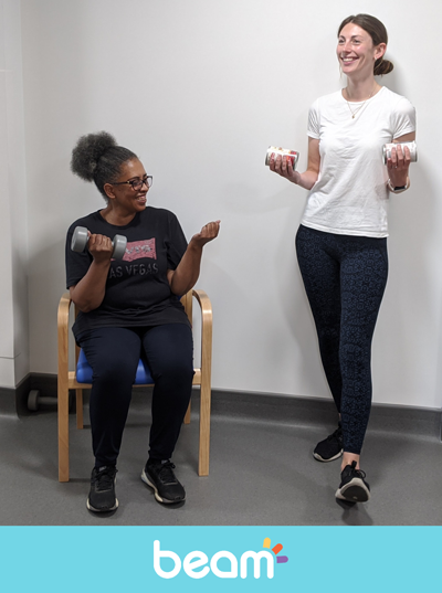 Kidney Beam is an online platform designed just for kidney patients and is a collaboration between King’s College Hospital NHS Trust and Beam, a digital exercise, education and well-being platform for people with chronic health conditions. NHS professionals and qualified experts deliver both live movement classes and an ‘on-demand’ library of video classes. The physiotherapy-led classes have been developed into an on-demand 12-week programme mirroring the renal rehabilitation in-hospital programme support that currently only some patients have access to.