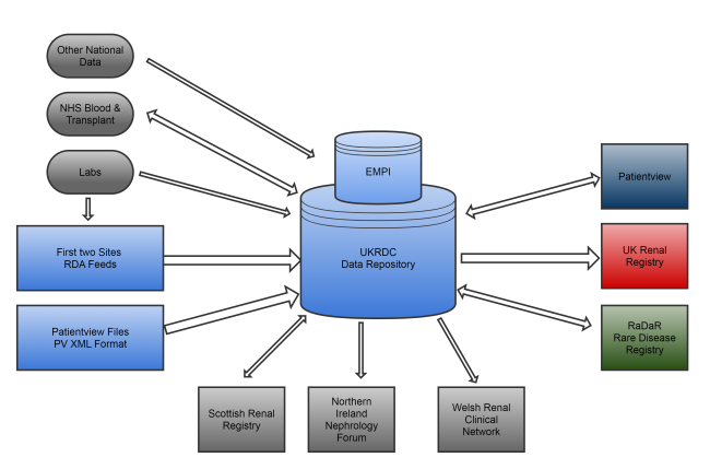 - Improve and standardise data communications between UKRDC member organisations and between renal centres, allowing for the rapid transfer of a full patient record and full access to their data by patients